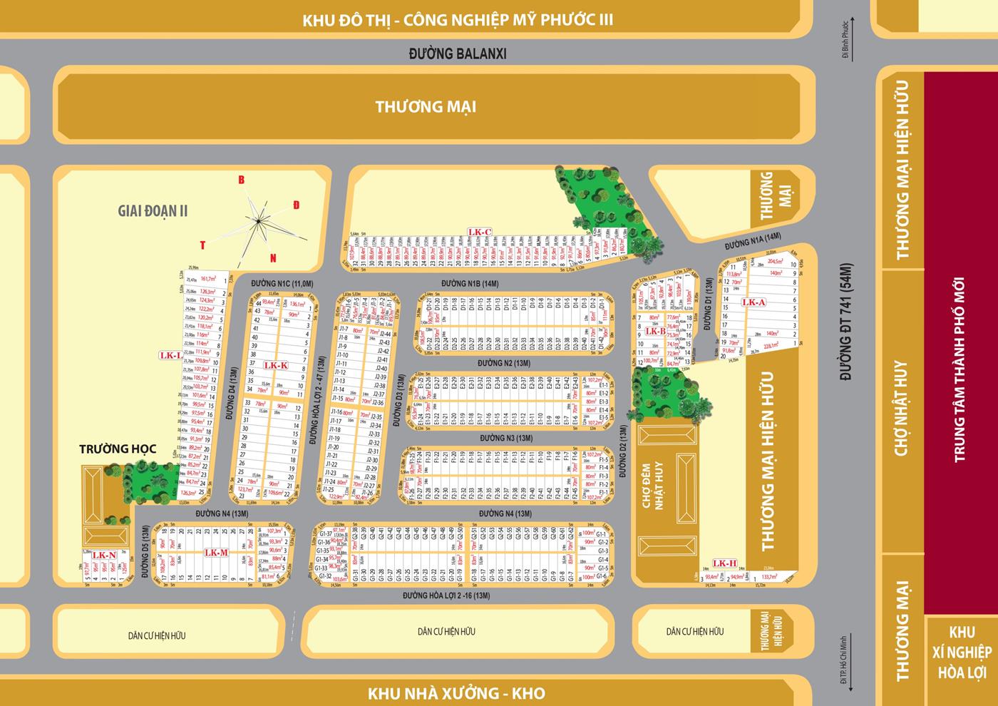 - Hạ tầng: Đường trải thảm nhựa rộng 10 – 13m, hệ thống thoát nước, điện, siêu thị.